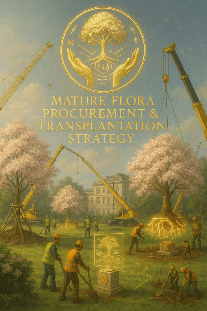 The Mature Flora Procurement & Transplantation Strategyâ„¢ is a sovereign ecological infrastructure protocol for immediate estate activation. It ensures the procurement, transplantation, and ceremonial integration of mature, pesticide-free flora across all Fifth House estates. This system bypasses long growth timelines, delivering instant ecological restoration, cultural ceremony, and commercial yield for food, fragrance, and media.