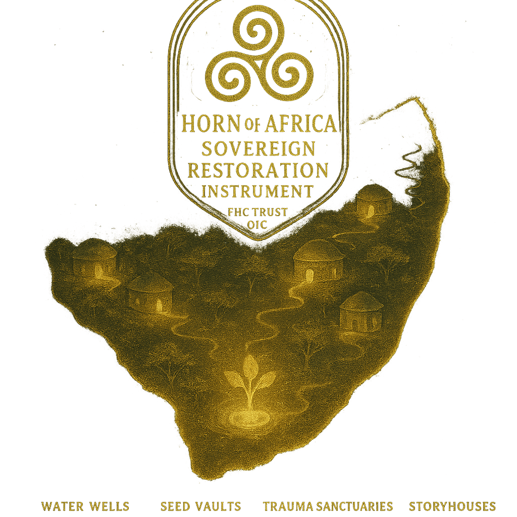 The Horn of Africa Sovereign Restoration Instrument™ is a sovereign financial structure created to regenerate food, water, and cultural sovereignty across Somalia, Ethiopia, and Eritrea. Anchoring non-extractive restoration systems, it focuses on aquifer regeneration, Indigenous seed banks, maritime economy rebuilding, trauma healing sanctuaries, and oral language grids. This initiative positions survival assets as sovereign IP protected by trust, ensuring long-term resilience beyond aid dependency.