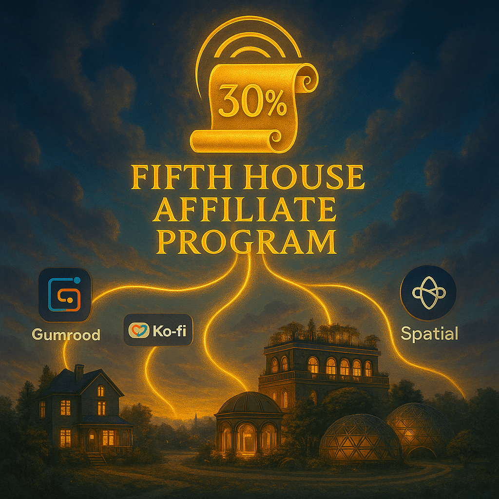 The Fifth House Affiliate Program™ transforms affiliate income from referral-style funnels into a scroll-backed sovereign infrastructure. Participants earn 30% commissions across digital products, curriculum, licensing, and immersive workshops. Fully embedded across Fifth House platforms — Gumroad, Ko-fi, Carrd, and Spatial.io — it operates as a sovereign wealth distribution system, not a marketing tool.