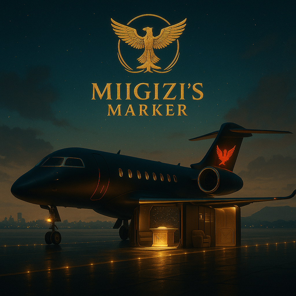 Miigiziās Marker⢠is a custom sovereign jet, built on the Bombardier Global 7500 platform, configured as a flying altar, archive, and creative sanctuary. It links more than 58 estates across continents, extending Fifth Houseās sovereign mobility into the skies. Beyond transport, it is a vault in motionāhosting ceremony, creative production, ritual IP drops, and emergency humanitarian or estate response.