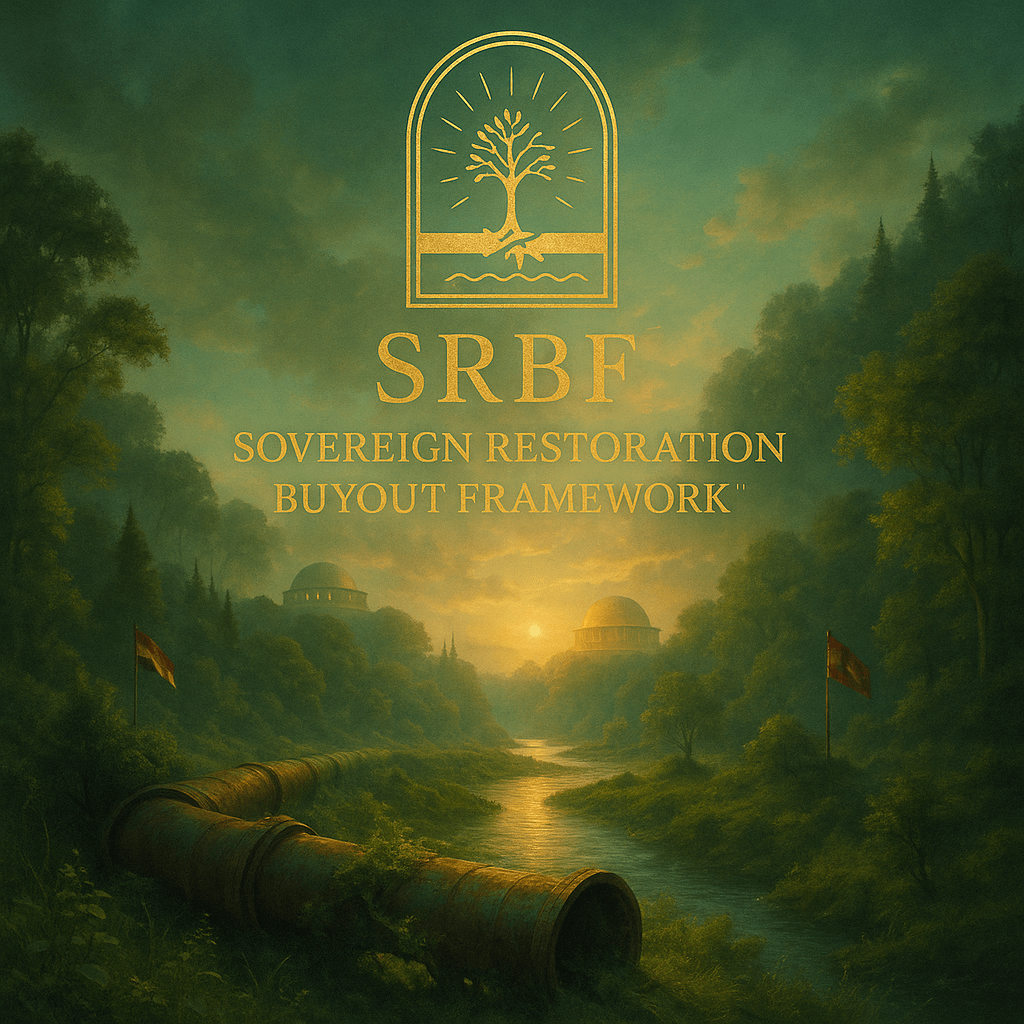The Sovereign Regenerative Buyout Framework (SRBF™) is a turnkey sovereign protocol that deactivates extractive megaprojects, repatriates land titles to hereditary Indigenous governance, and installs regenerative infrastructure for food, water, education, and energy. By converting harm into peace zones and sanctuaries, the framework yields measurable cultural, ecological, and sovereign economic returns.