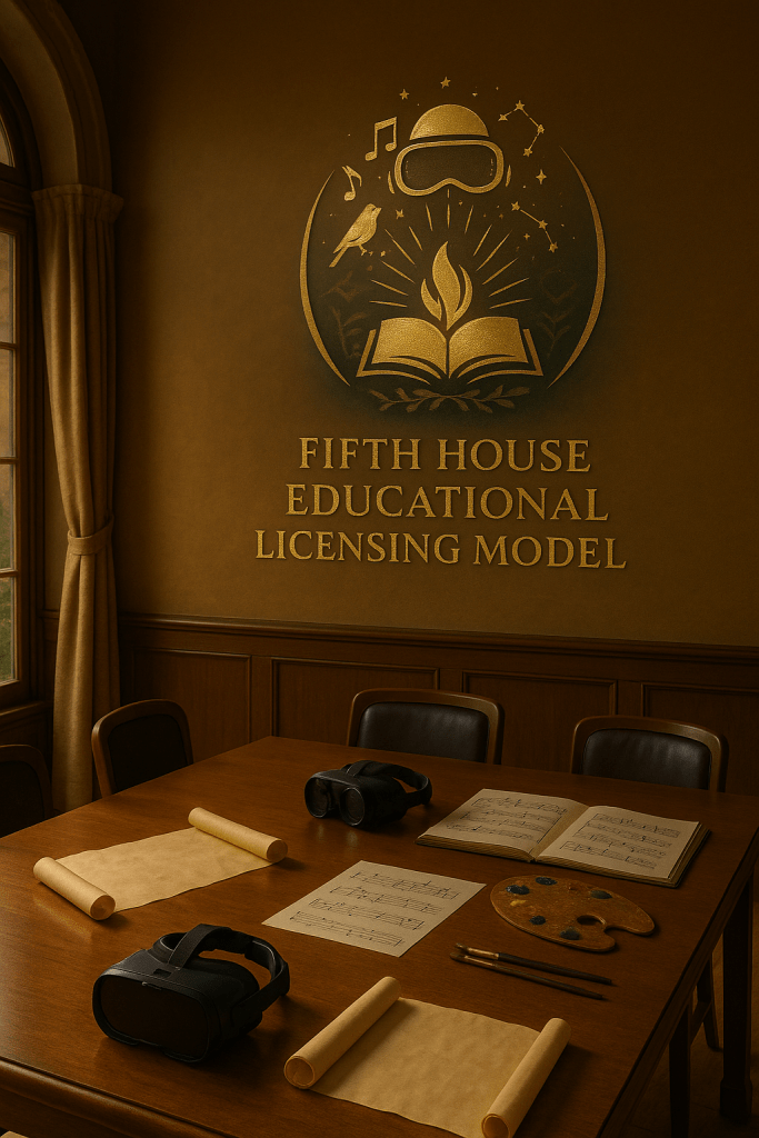 The Fifth House Educational Licensing Model transforms Amethyst Amaris’ authored IP—music, books, anime, poetry, and VR/AR spaces—into structured curriculum packages for schools, cultural programs, therapy organizations, and global education systems. Unlike conventional “arts education” add-ons, this system delivers living curriculum where sovereign art itself becomes a regenerative teaching tool.