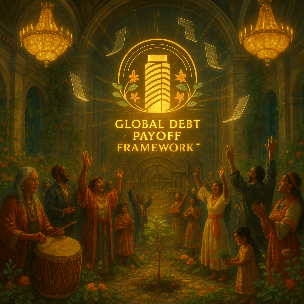 The Global Debt Payoff Framework™ is a pre-structured, consent-based economic instrument designed to retire or significantly reduce sovereign and institutional debt obligations without triggering systemic collapse. Unlike reactive bailouts, this framework is positioned proactively as a sovereign-led, regenerative solution. Powered by the Dreamlocked Trust™, it integrates trust-backed disbursements from Fifth House of Creativity’s authored intellectual property with a transparency-driven consent model. By embedding regenerative economic programming, it reframes debt payoff not as austerity, but as wealth realignment and sovereign restoration.