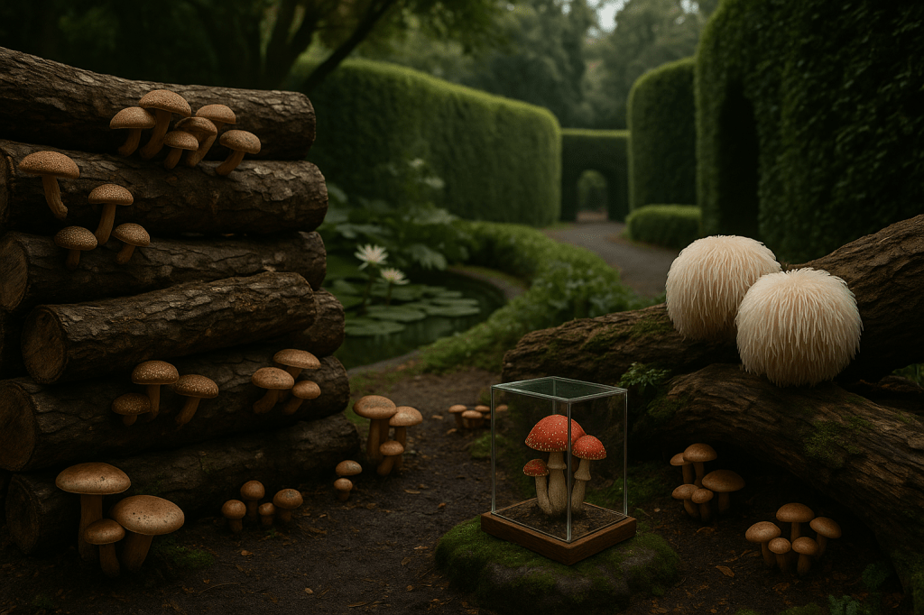 - Mycelium & Medicine Nodes: shiitake, lion’s mane, truffles, amanita displays, fiber crops.