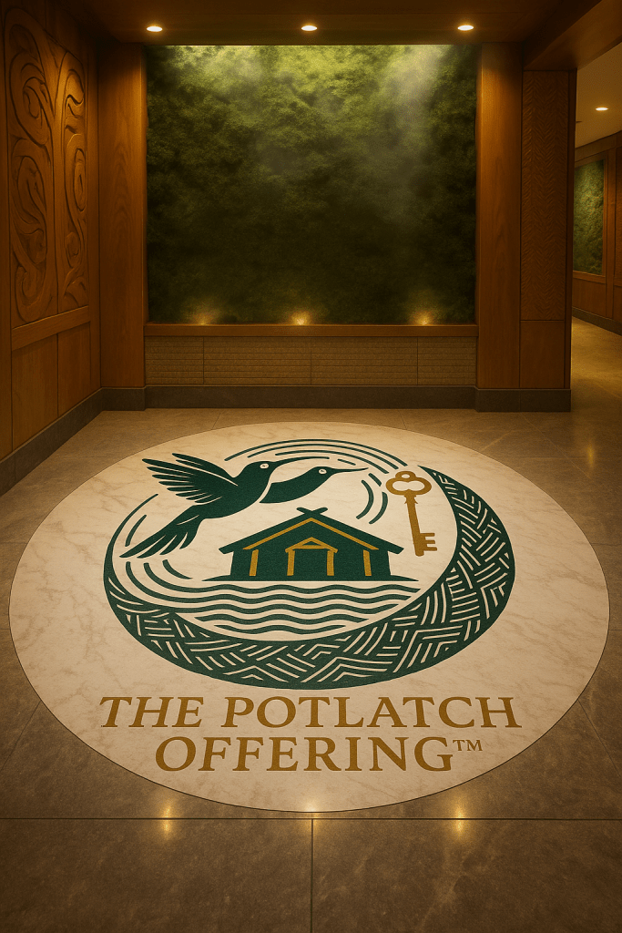 The Potlatch Offering™ is a sovereign housing model that converts vacant condominiums into trust-held, rent-free homes sustained by royalties, licensing, and regenerative infrastructure. Rooted in the Potlatch tradition of wealth circulation, this framework addresses Vancouver’s dual crisis of empty condos and housing insecurity by transforming speculation into sovereignty. Instead of rewarding hoarding, it channels authored IP into fiat, acquires condos outright, and circulates them back to communities under trust governance.