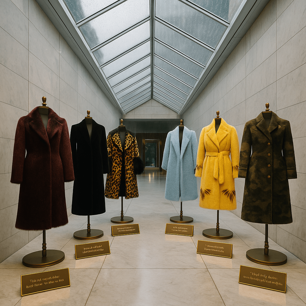 - Materials: Premium faux furs, velvet finishes, and satin linings printed with heritage motifs.